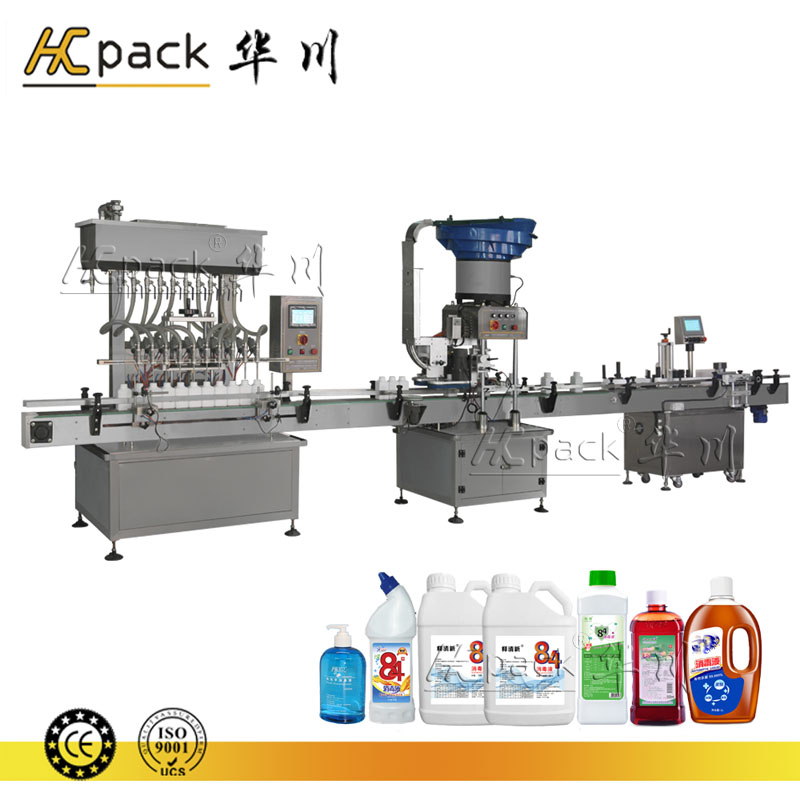 本生產線廣泛適用於日化品行業中的消毒水、洗手液、液態肥料等,食品行業食用調和油、果汁飲料、白酒(jiǔ)、黃酒(jiǔ)及醫藥、化工行業中易流動液體的灌裝、旋(壓)蓋,貼標(激光噴碼)